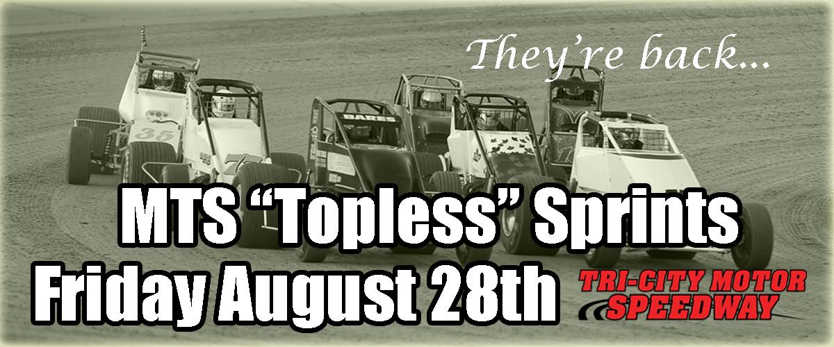 They're back by popular demand, the wild, the exciting topless sprint car. They've ordered a tacky track and the fans are going to get a show to remember. Get ready for the last sprint car race of the season Friday August 28th.