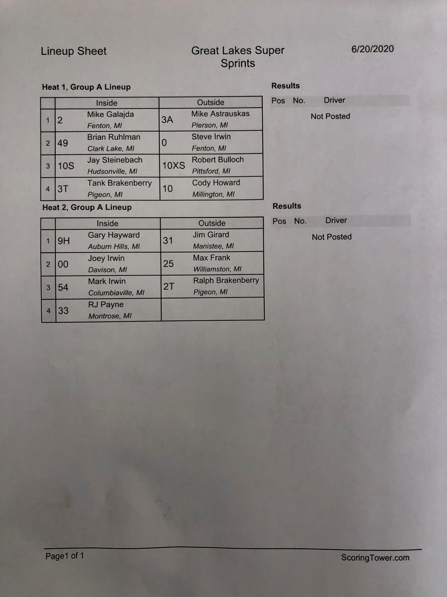 Our next scheduled race is Friday, July 3rd at I-96 Speedway. Please follow us on Facebook and check our website regularly for updates at www.greatlakessprints.com .