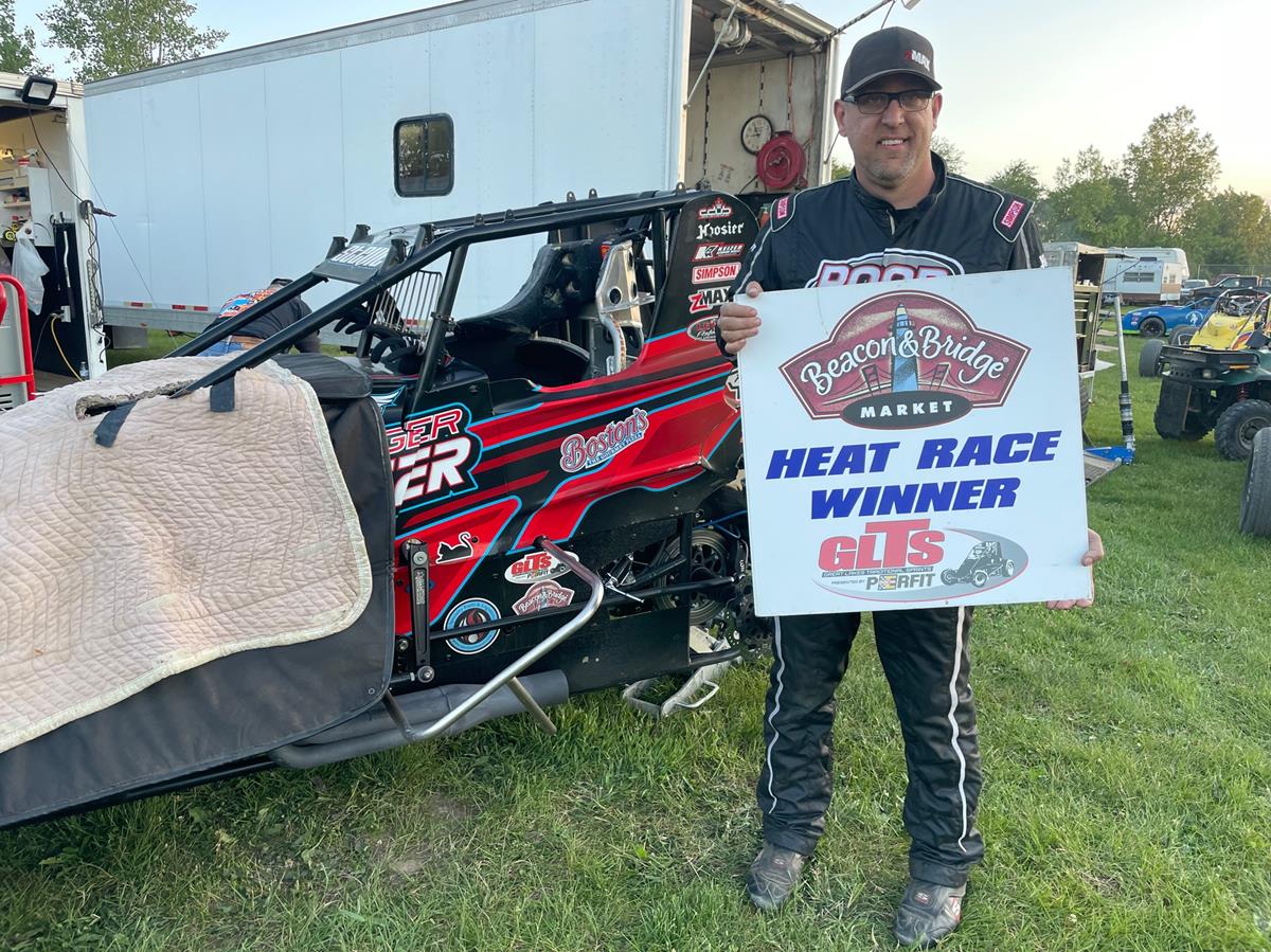 In the Beacon & Bridge Markets Heat 2, it was all Stevie Irwin as he cruised to the winners circle in 8 laps. Max Frank and Chris Pobanz (Sebewang, MI) rounded out the top 3 cars and moving them into the feature redraw.