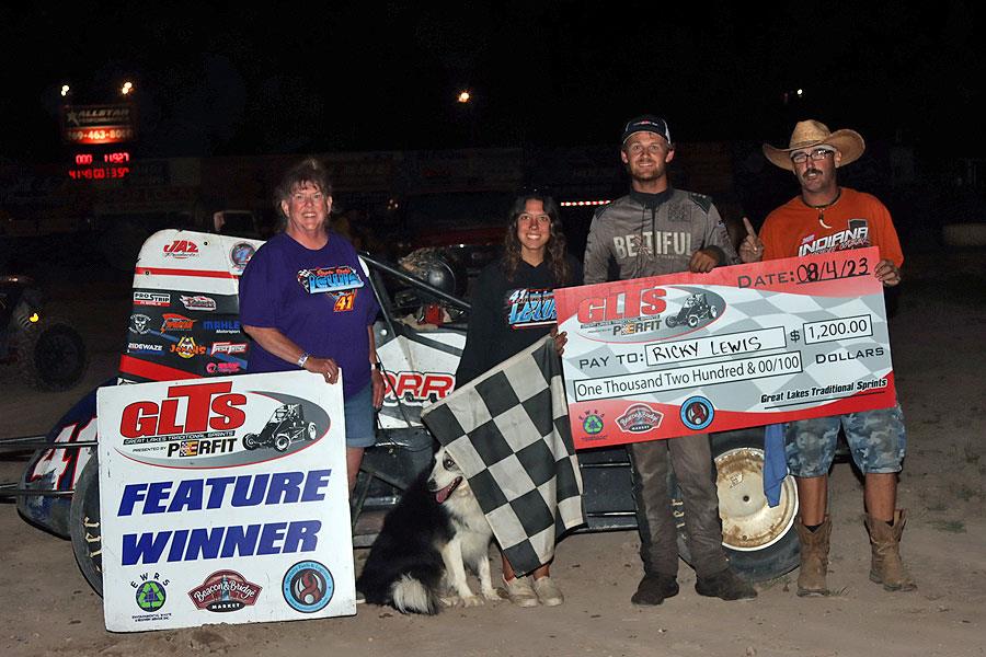 Ricky Lewis (Camarillo, CA) started in 3rd place and after several cautions, he was able take the lead within the last few laps. Lewis was able to take home his fifth Feature Race win of the season with the GLTS! Excellent performances were also displayed by Keith Sheffer Jr. (Jerome, MI) who took the wing off his 360 and joined the 410's, earning the Hoosier Racing Tire Hard Charger award by climbing eight positions from 15th to 7th place.